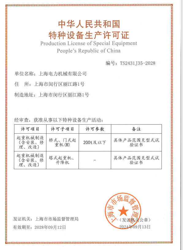 特种设备安装改造修理许可证(起重机械) |