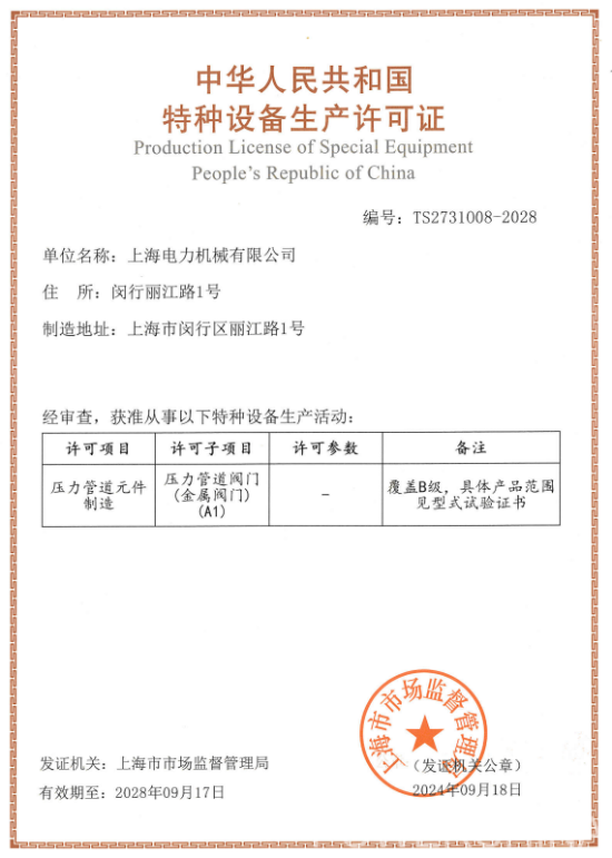 特种设备生产许可证-压力管道元件制造 |