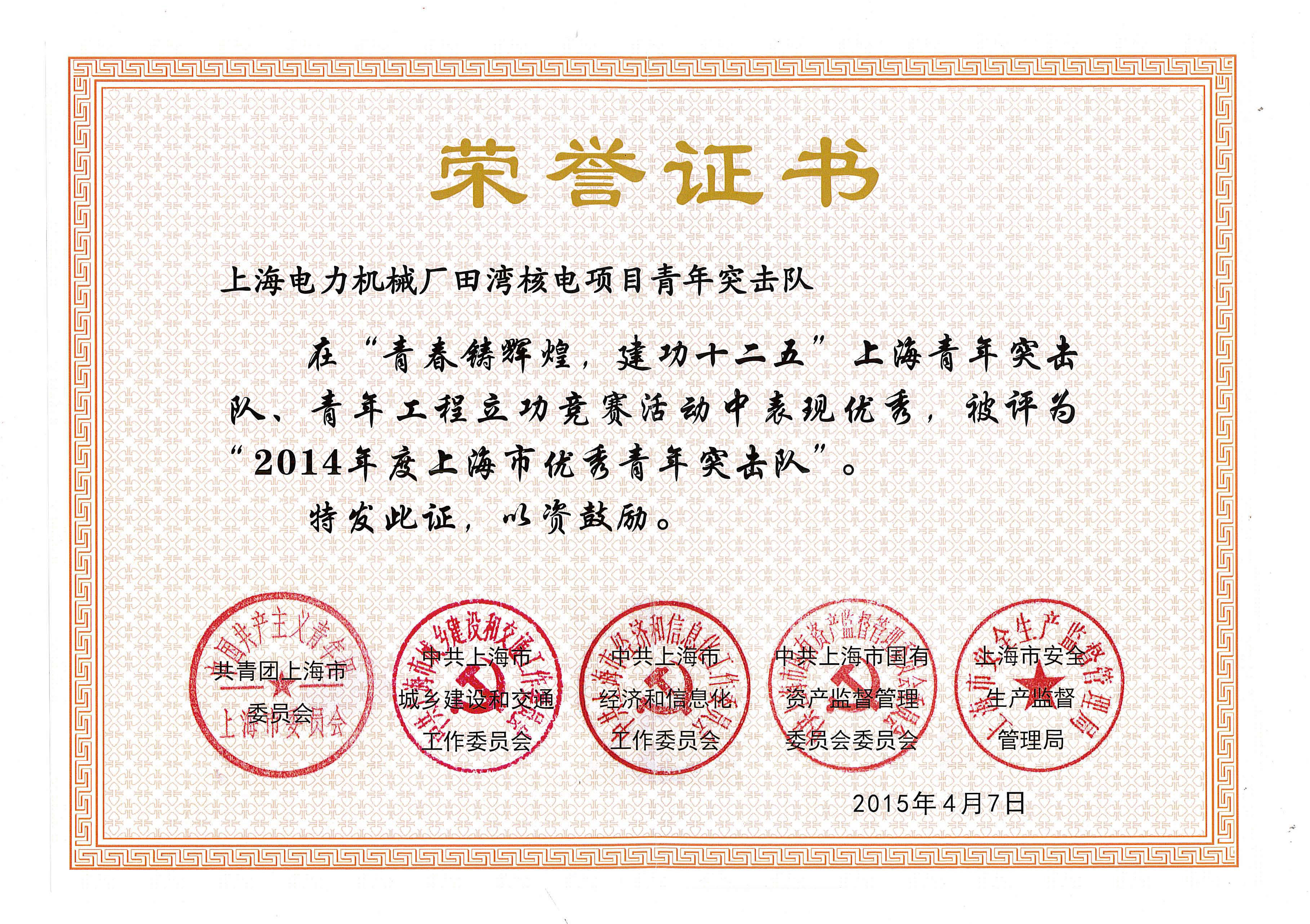 2014年度上海市优秀青年突击队【田湾核电项目】