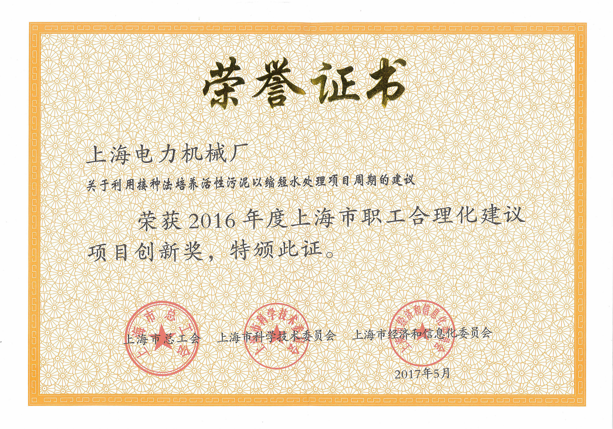 2016年度上海市职工合理化建议创新奖【生物处理活性污泥法】